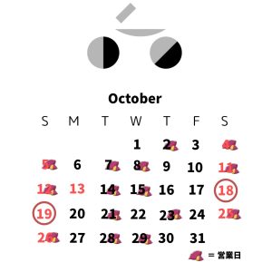 カレンダーのサツマイモのマークがついた日がOPENしております。